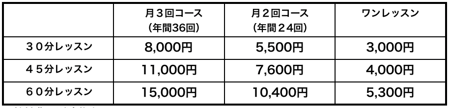 ・月途中での入会は、レッスン回数に応じてワンレッスンの金額で調整させていただきます。